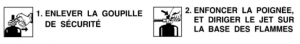 Après retrait de la goupille de sécurité, appuyer sur le levier de commande. Ce levier libère la poudre tout en assurant le contrôle de son débit, grâce à un clapet situé à l’intérieur de la robinetterie. La simplicité de fonctionnement évite tout risque de fausse manoeuvre.
