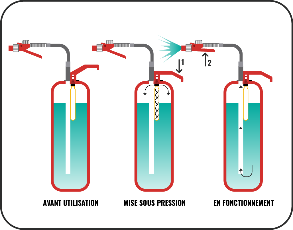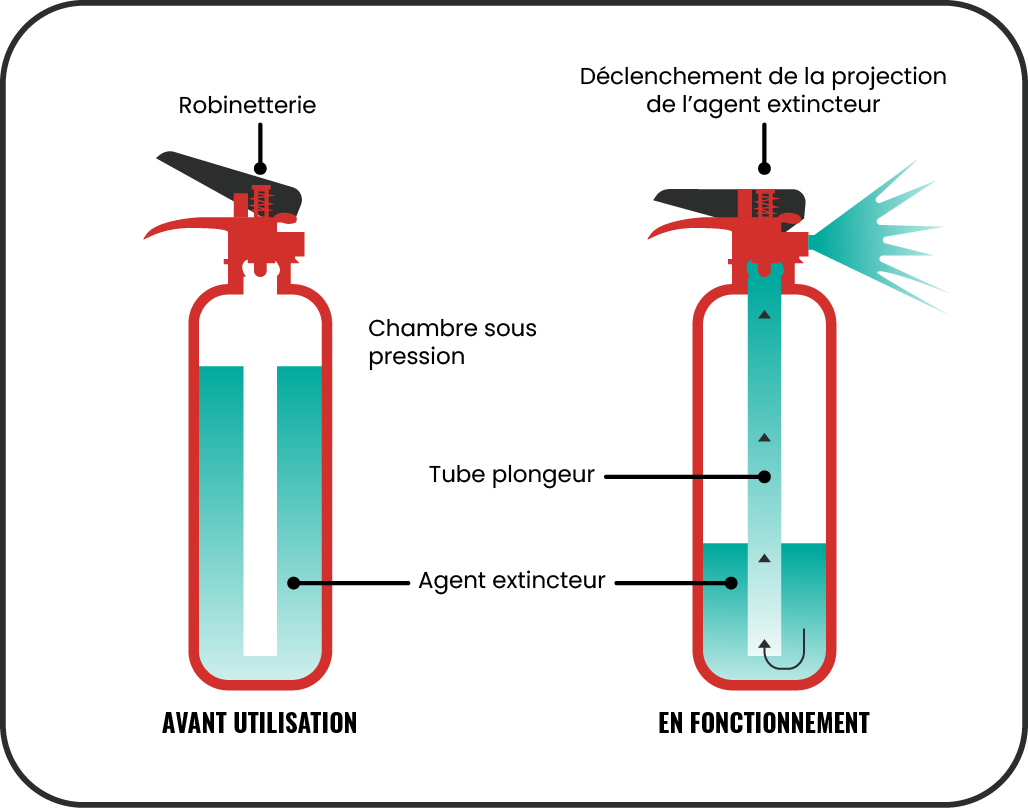 Il existe deux types d’extincteurs : les appareils à pression permanente et les appareils à pression auxiliaire.